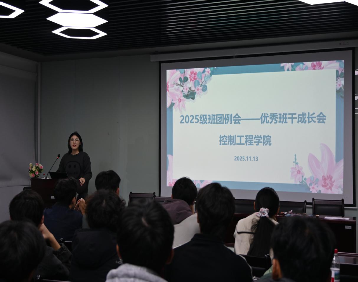 为进一步提升2025级新生班团的工作能力与责任意识,夯实班级管理基础,凝聚班团集体力量,控制工程学院于2025年11月13日下午17:20在敏行楼202会议室隆重举办2025级班团例会暨优秀班干成长会。本次会议由2025级辅导员朱娟娟主持,2025级全体班团干部参会,学院学生会主席团华玉鑫、齐松涛、张彪受邀担任分享嘉宾。会议伊始,朱老师以“最近工作累吗”话题拉近距离,针对新生班干事务繁杂、沟通协调难等痛点,开展精彩互动。各班团积极分享通知传达、...