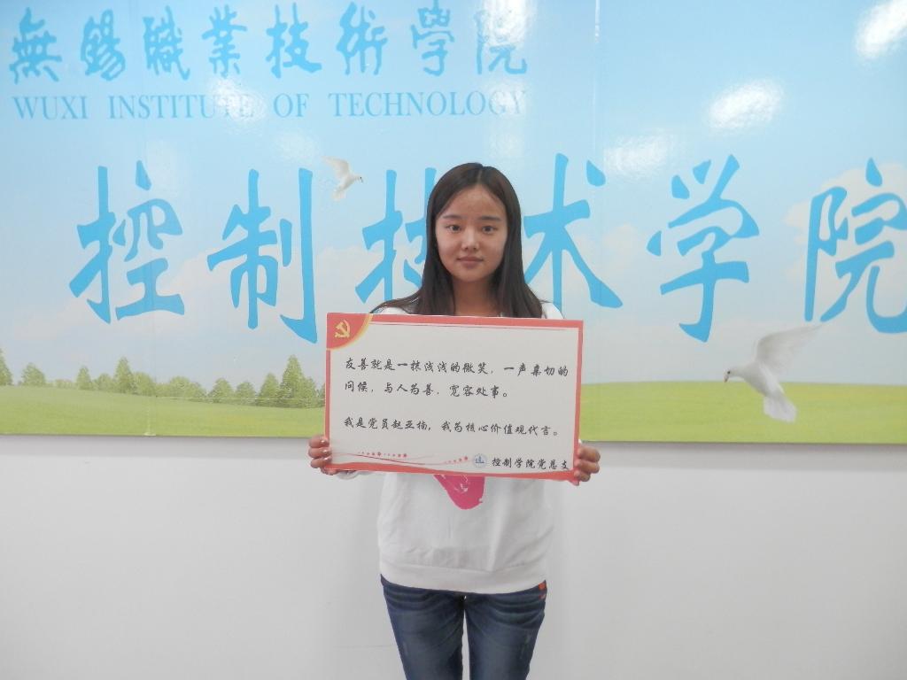 “拿起扫帚和拖把,宿舍马上变成家”、“少说多做,让校园成为绿色殿堂”、“友善就是一抹浅浅的微笑,一声亲切的问候,与人为善,宽容处事”……14名学生党员用这样朴实的语言阐述对社会主义核心价值观的理解;刻苦学习、勤恳工作,无论是开学迎新还是平时服务,他们用灿烂的笑容和热心的行动为社会主义核心价值观代言。在启动仪式的现场,全体学生党员郑重承诺:加强学习,立足服务,践行核心价值观,争做职院好党员。(郑月圆)