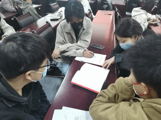 四名同学的读书分享结束后,张丽仙老师进行小组讨论,最后对活动进行了点评,对入党积极分子们的精彩表现和感悟分享给予了充分肯定,并勉励他们要把读书作为树立高尚情趣爱好的重要途径,让读书成为一种政治责任、精神追求、生活方式,在书籍中汲取智慧和力量,以实际行动和优异成绩迎接党的二十大胜利召开。