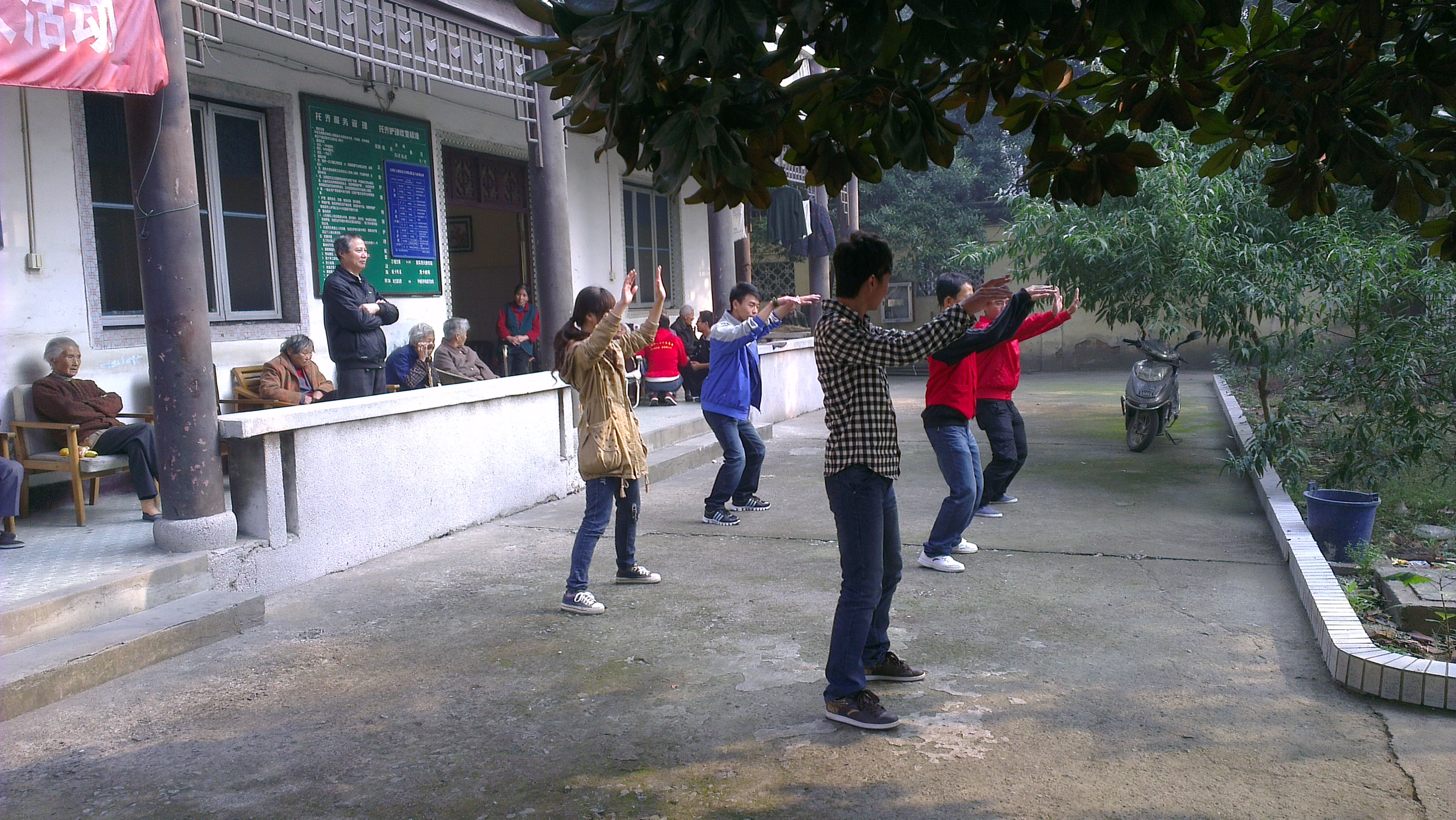 志愿者们给老人们带来了水果、饼干等慰问品,帮助老人们整理内务,搀扶他们晒太阳、陪他们聊天、帮他们剪指甲,多才多艺的同学们还给老人们带来了太极拳、唱歌等表演,同学们的到来给老人们带来了欢声笑语,整个敬老院充满了年轻的气息,让老人们体验到了家的温暖。祝愿天下所有的老人们幸福安康。