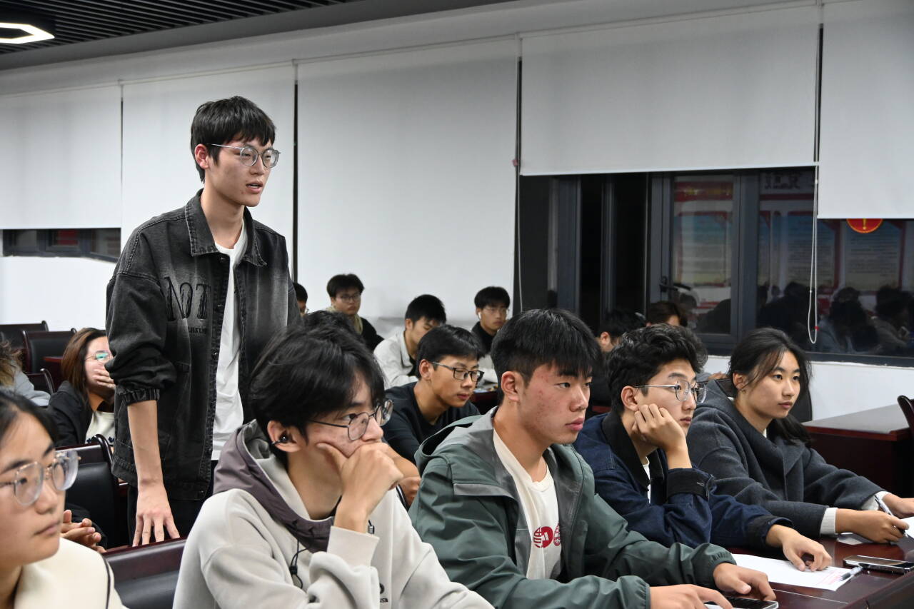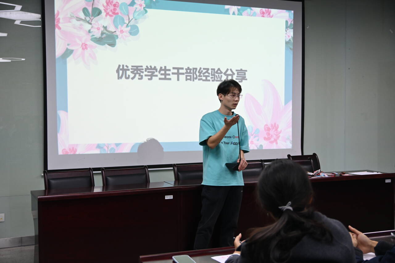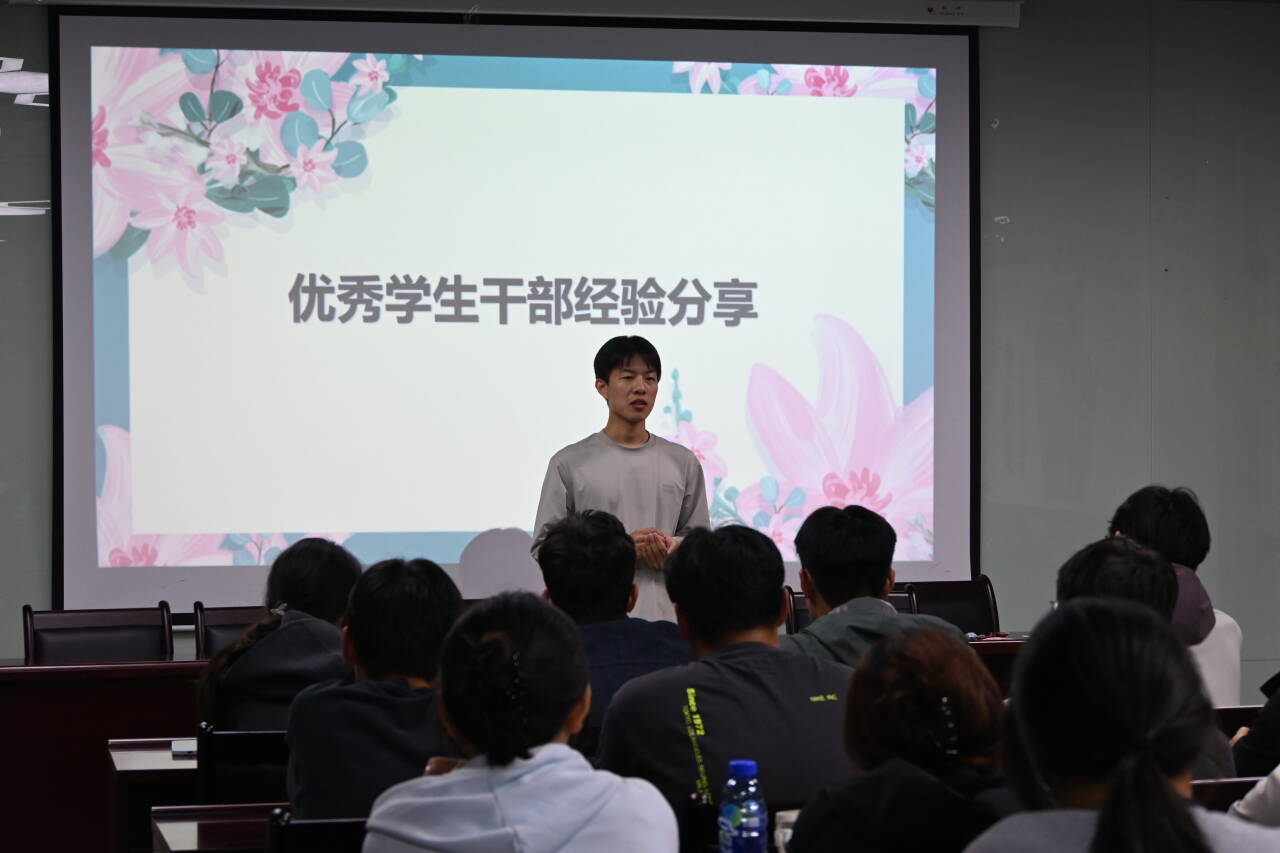 随后,学院学生会主席团华玉鑫、齐松涛、张彪依次分享。华玉鑫以“稳扎稳打,把握成长机遇”为核心,从课堂、竞赛、工作三方面展开,提出“水课不水”理念,引导新生班团善于发现课程中蕴藏的成长机会。齐松涛以“尽力、尽心、尽情”为关键词,强调工作需精益求精、换位思考并保持热情,其认真态度触动在场人员。张彪结合自身成长经历,总结工作窍门,分享平衡学习与工作的碎片化时间利用技巧,真诚话语赢得阵阵掌声。