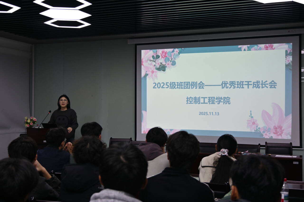 为进一步提升2025级新生班团的工作能力与责任意识,夯实班级管理基础,凝聚班团集体力量,控制工程学院于2025年11月13日下午17:20在敏行楼202会议室隆重举办2025级班团例会暨优秀班干成长会。本次会议由2025级辅导员朱娟娟主持,2025级全体班团干部参会,学院学生会主席团华玉鑫、齐松涛、张彪受邀担任分享嘉宾。