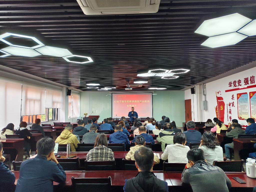 为深入贯彻落实学校关于加强师德师风建设的部署要求,进一步增强全体教师的责任感与使命感,11月11日,控制工程学院组织全体教职工开展师德师风警示教育专项学习。会议由学院党总支书记曹秀中主持。