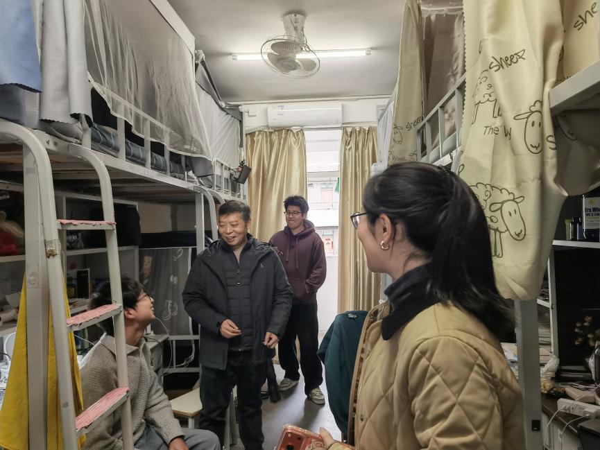 此次走访以“排查隐患、关爱学生、夯实阵地”为核心,深化一站式学生社区建设。走访过程中,领导和老师们深入每一间宿舍,细致排查水电安全、消防隐患,提醒学生规范使用电器,及时清理宿舍杂物,保持宿舍通风整洁,筑牢宿舍安全防线。